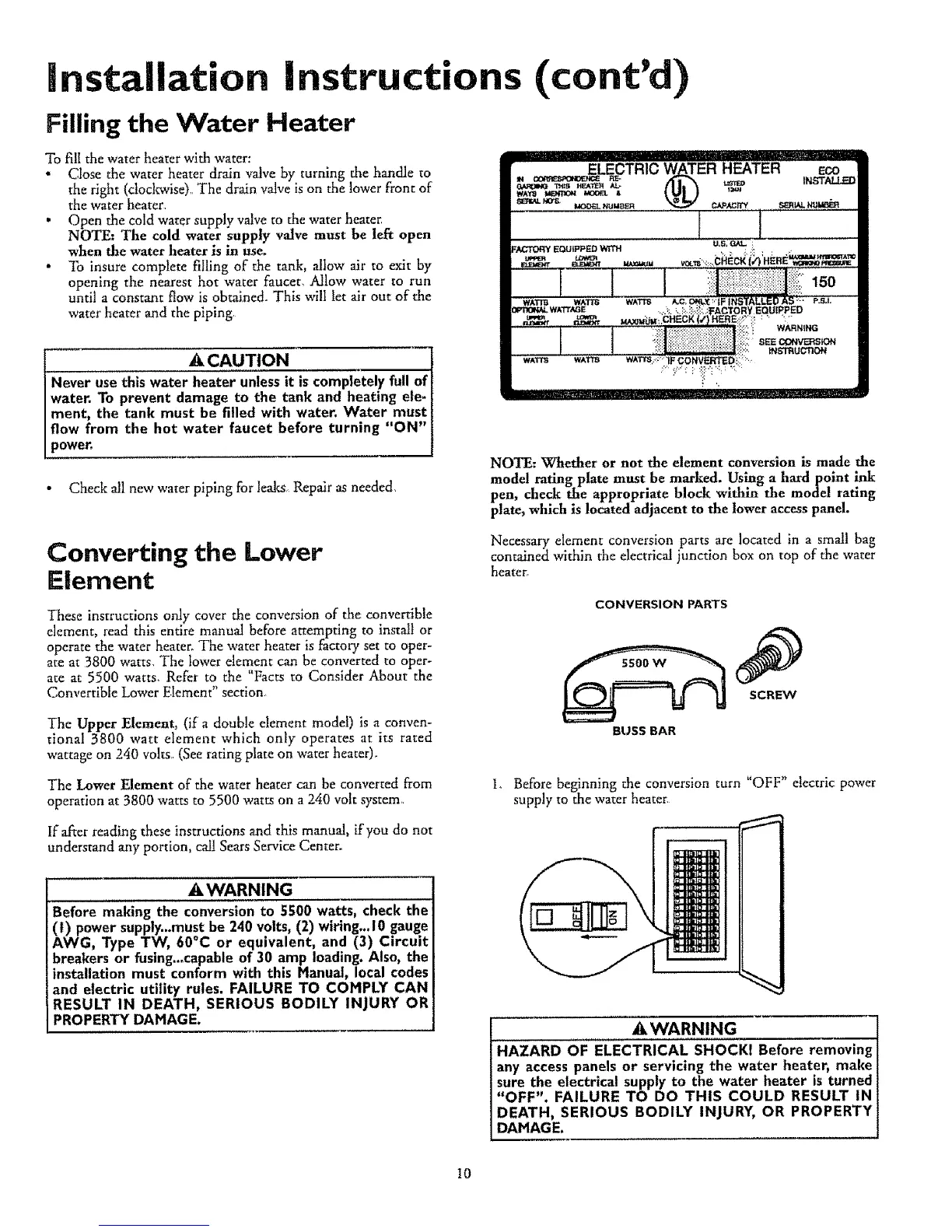 Io Before beginning the conversion turn "OFF" electric power