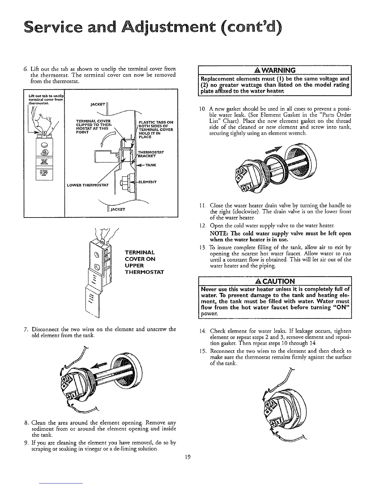 water, To prevent damage to the tank and heating ele-I