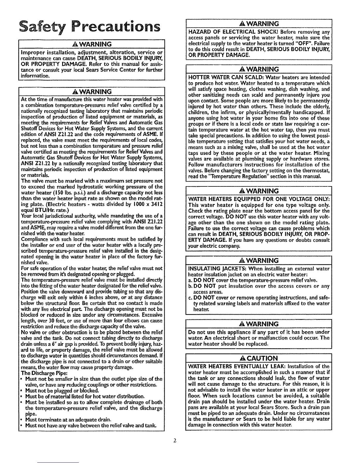 For safeoperation of the water heater, the relief valve must not