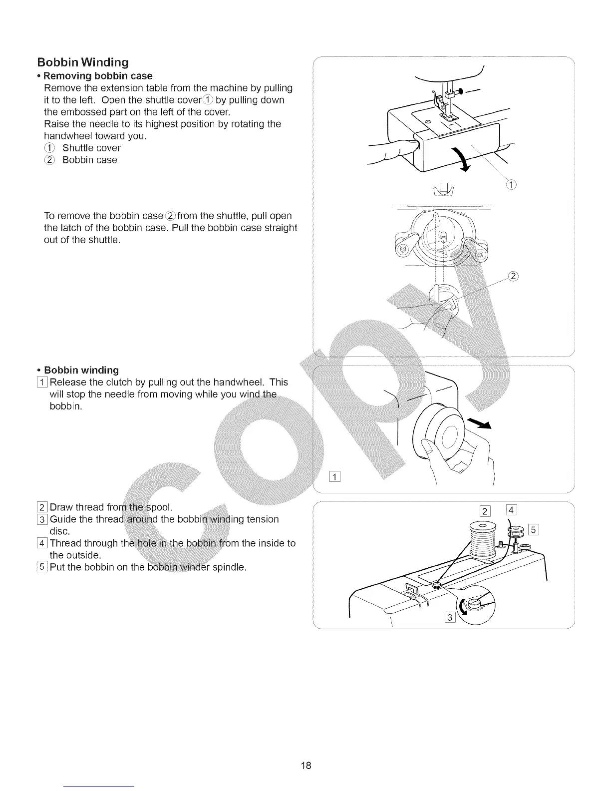 oRemoving bobbin case
