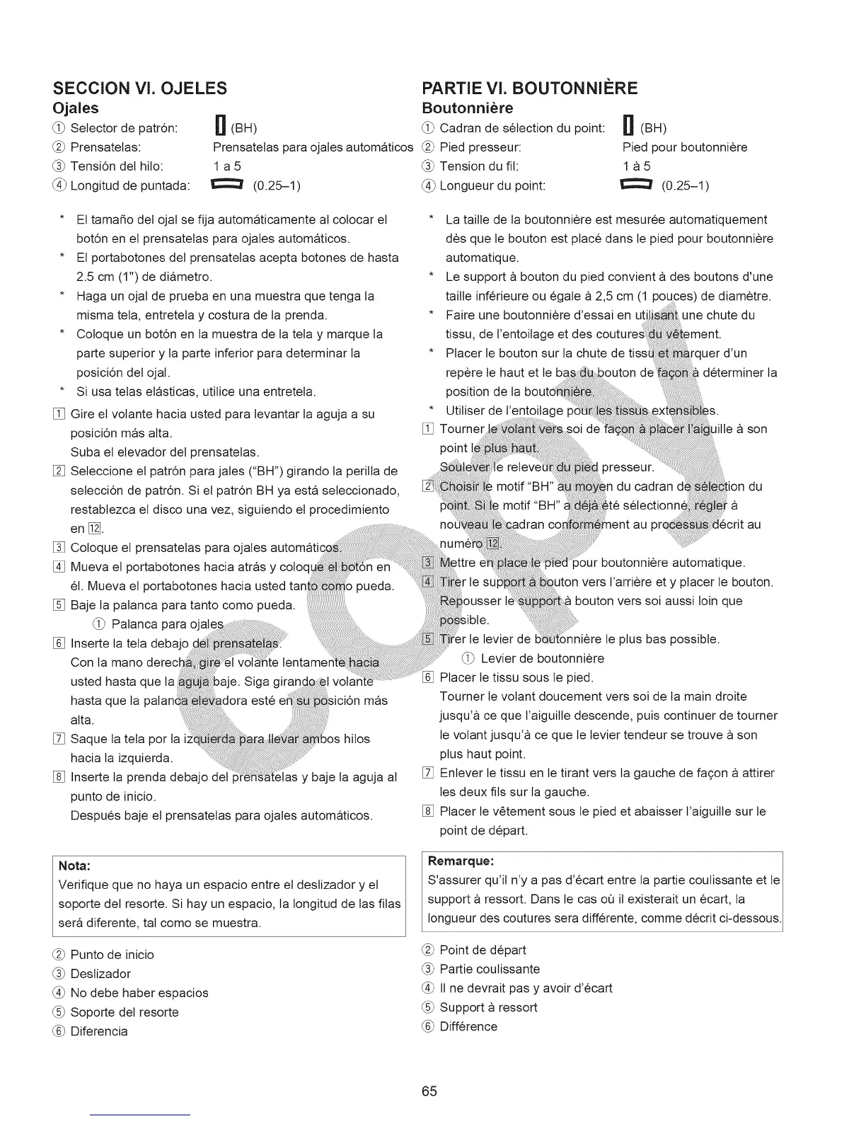 (_ Prensatetas: Prensatetas para ojales automaticos (_ Pied presseur: Pied pour boutonniere