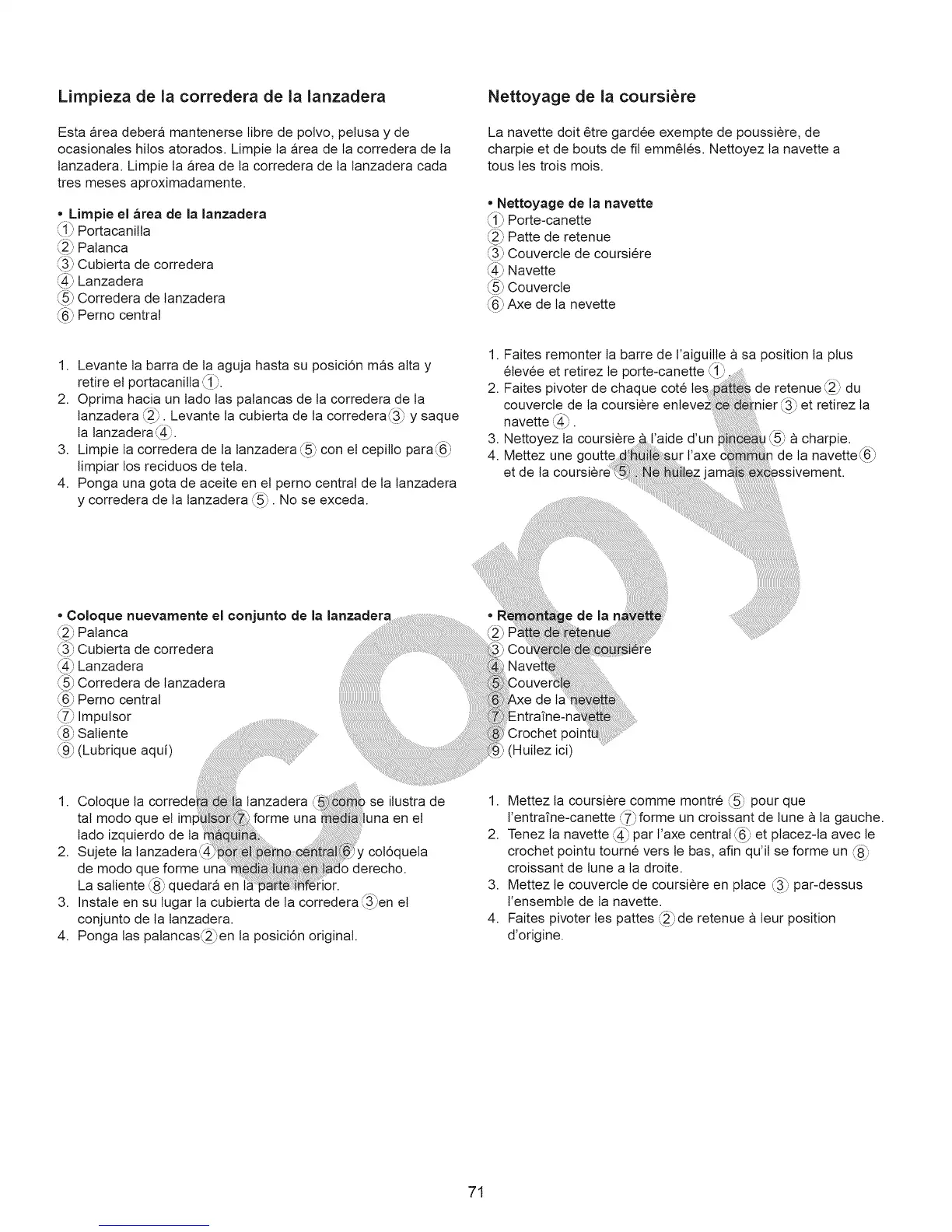 Limpieza de la corredera de la lanzadera Nettoyage de la coursi_re
