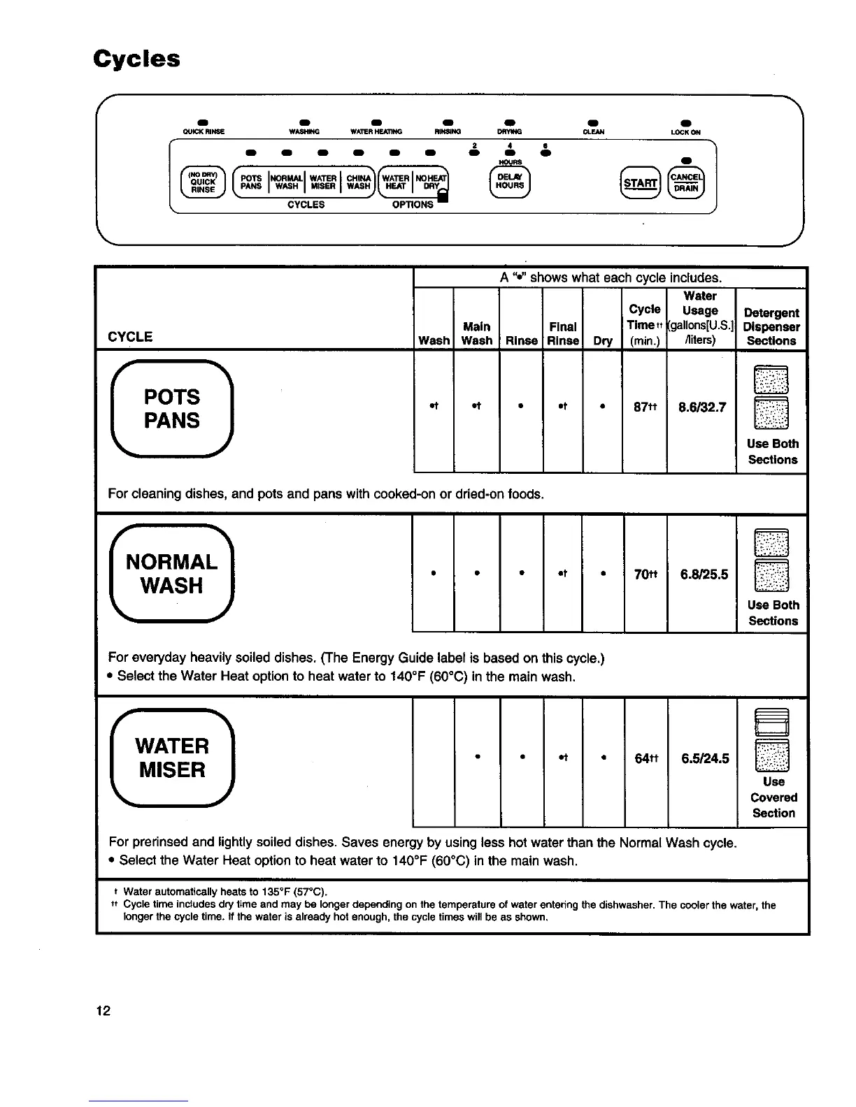 For prerinsed and lightly soiled dishes. Saves energy by using less hot water than the Normal Wash cycle.