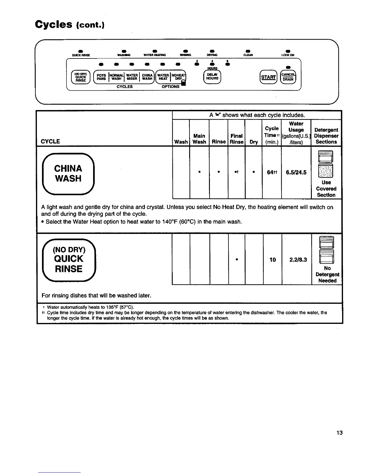 tt Cycle time includes dry time and may be longer depending on the temperature of water entering the dishwasher, The cooler the water, the