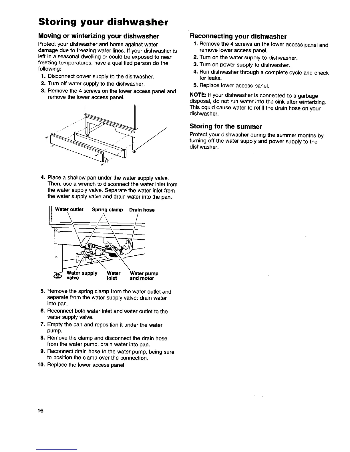 Moving or winterizing your dishwasher