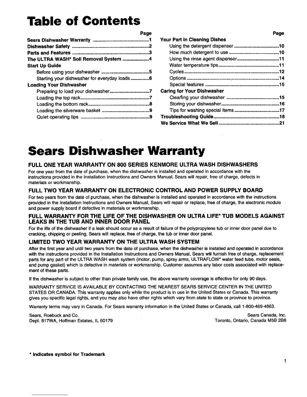 Warranty terms may vary in Canada. For Sears warranty information in the United States or Canada, call 1-800-469-4663.