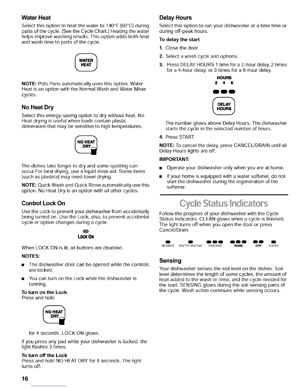 parts of the cycle. (See the Cycle Chart.) Heating the water