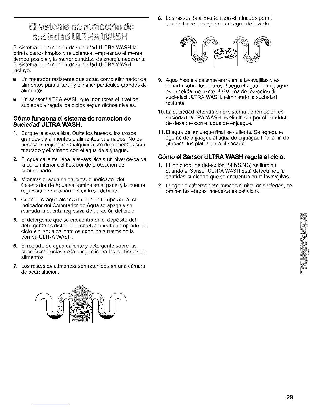 El sistema de remoci6n de suciedad ULTRA WASH le