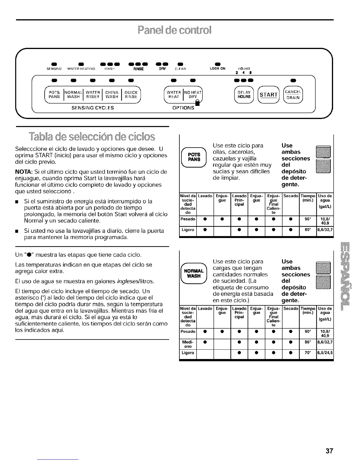 funcionar el Qltimo ciclo completo de lavado y opciones