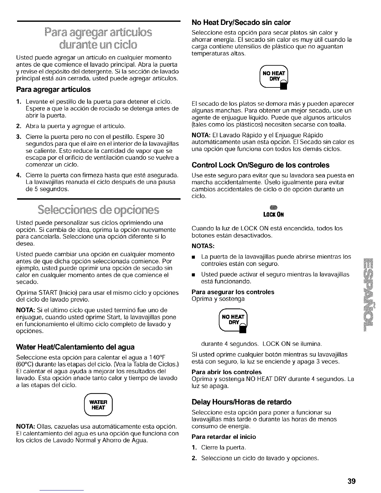 automSticamente usan esta opci6n. El Secado sin calor es