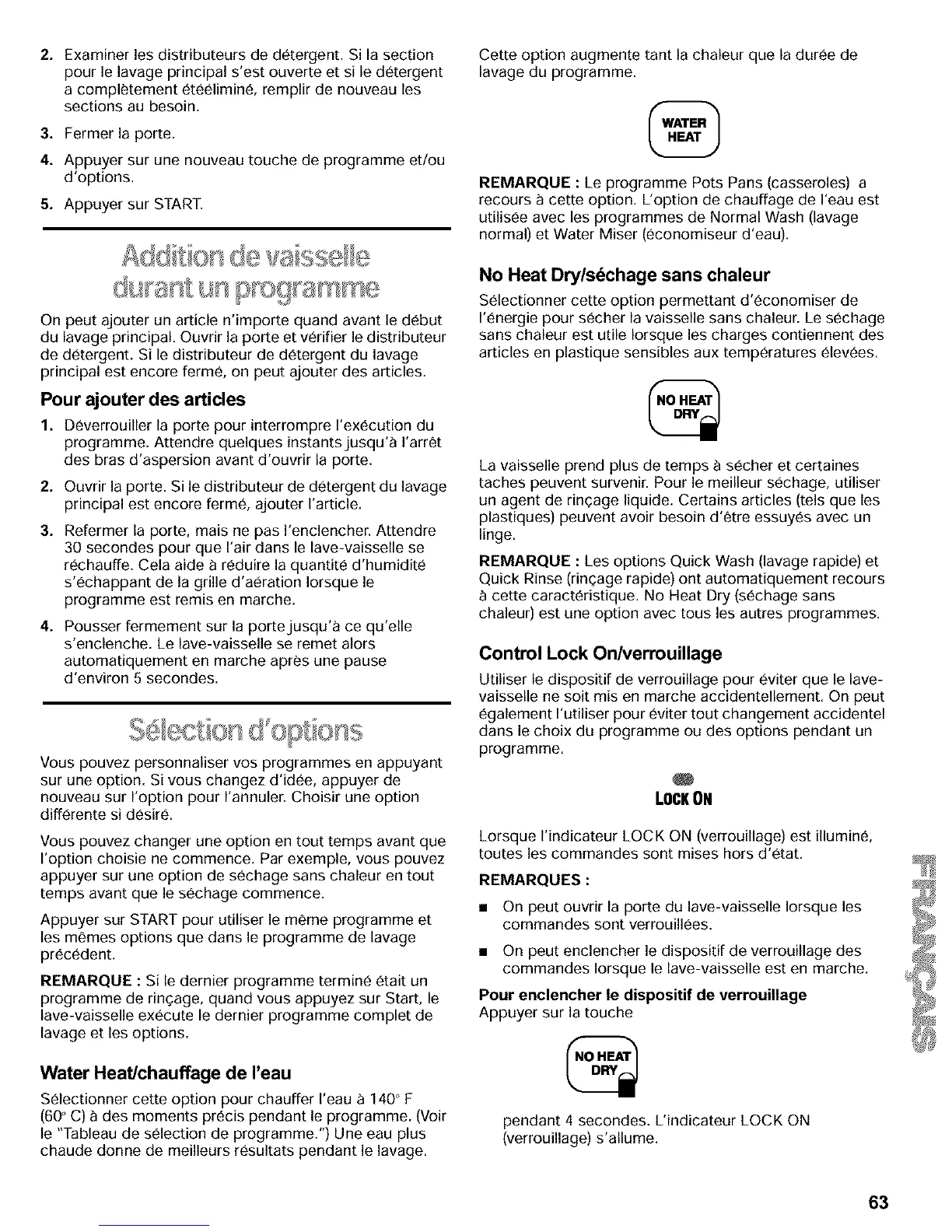 commandes Iorsque le lave-vaisselle est en marche.