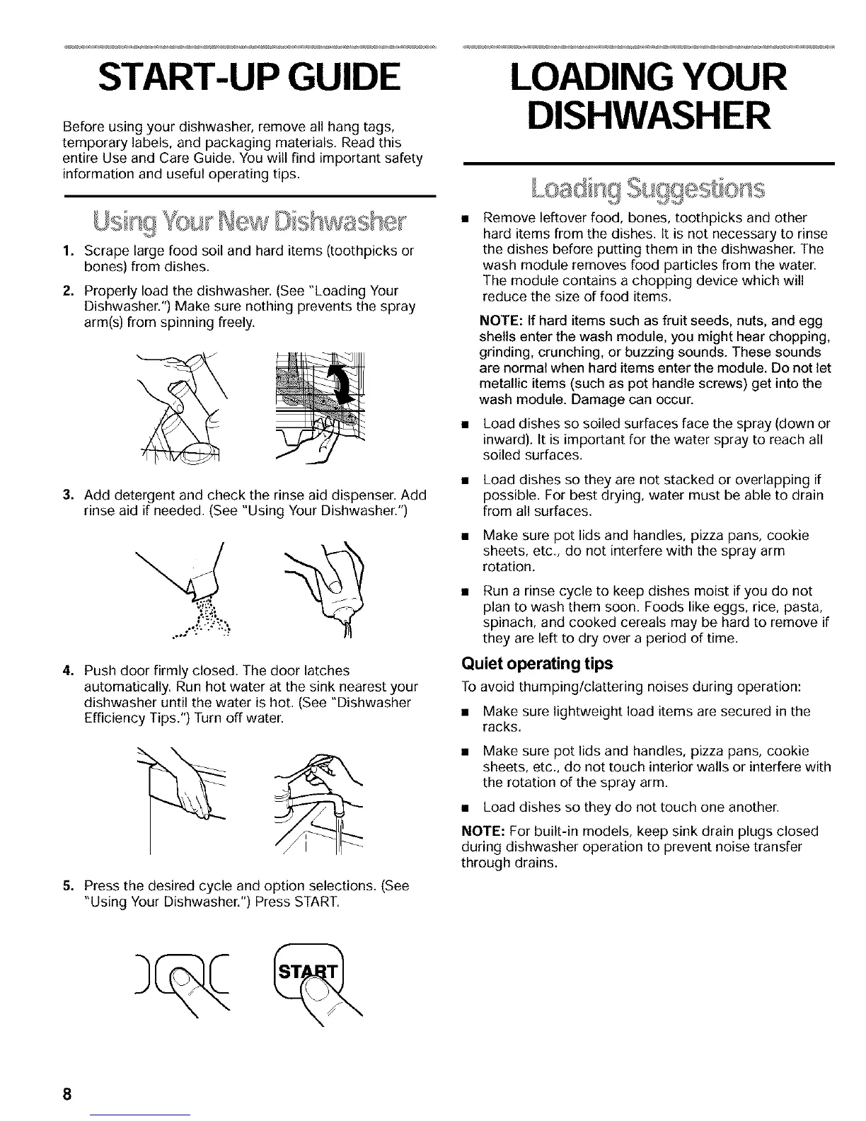 2. Properly load the dishwasher. (See "Loading Your