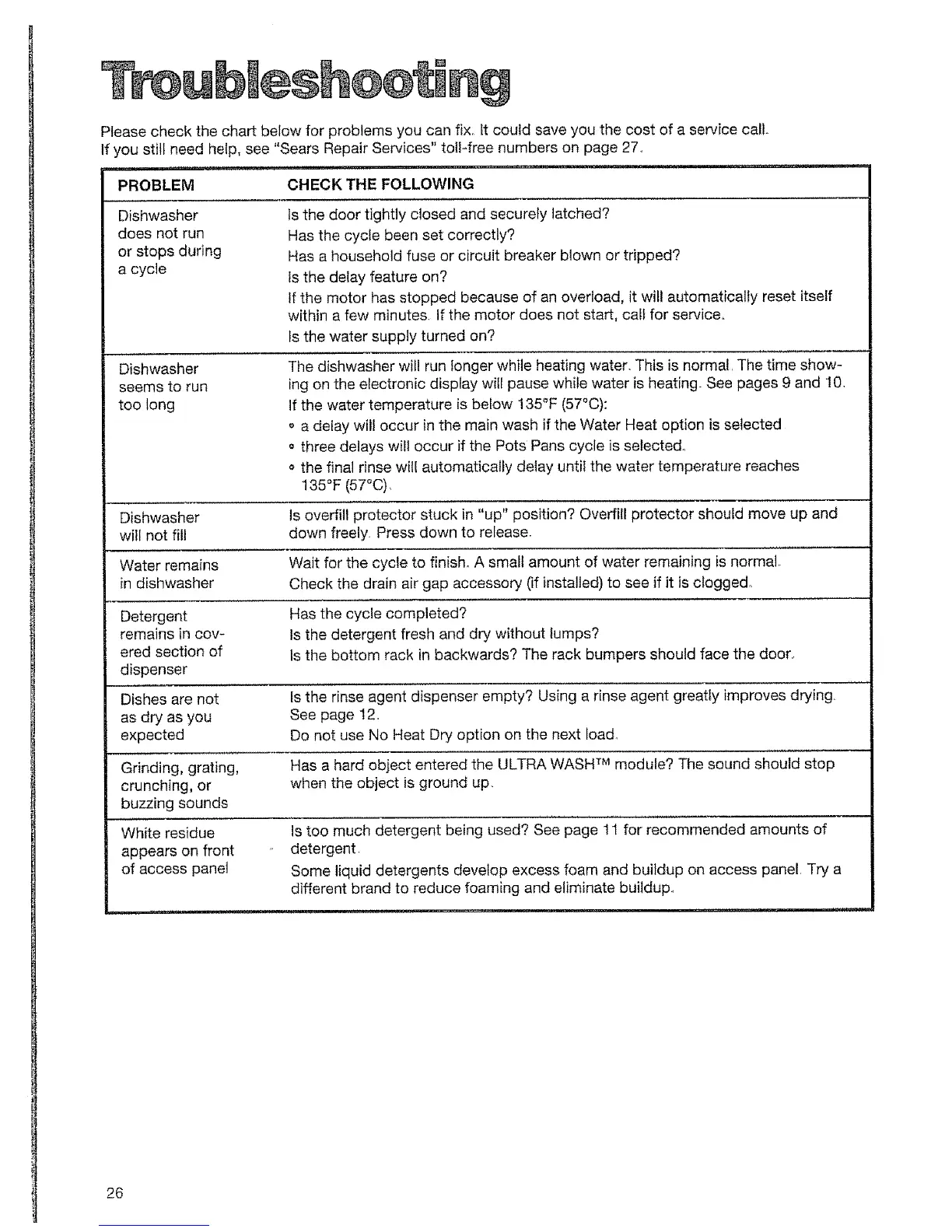 If you still need help, see "Sears Repair Services" tofFfree numbers on page 27_