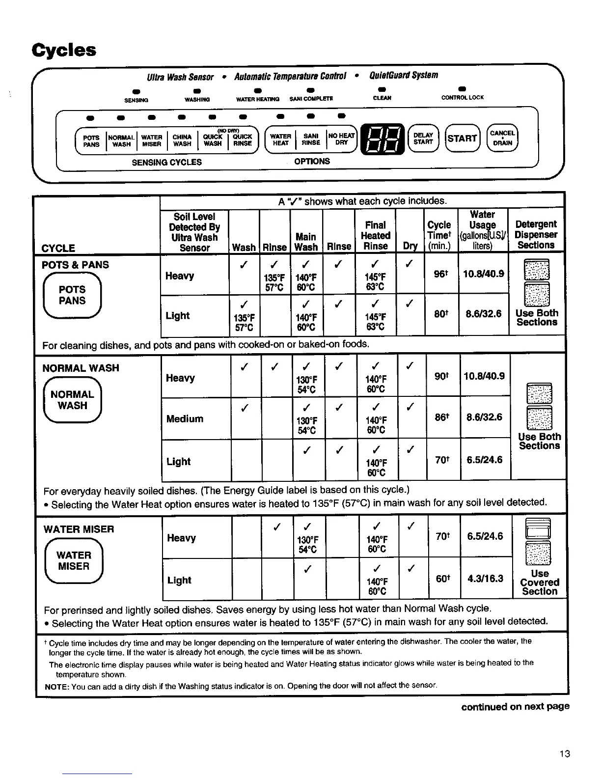 t Cycle time includes dry time and may be longer depending on the temperature of water entering the dishwasher. The cooler the water, the