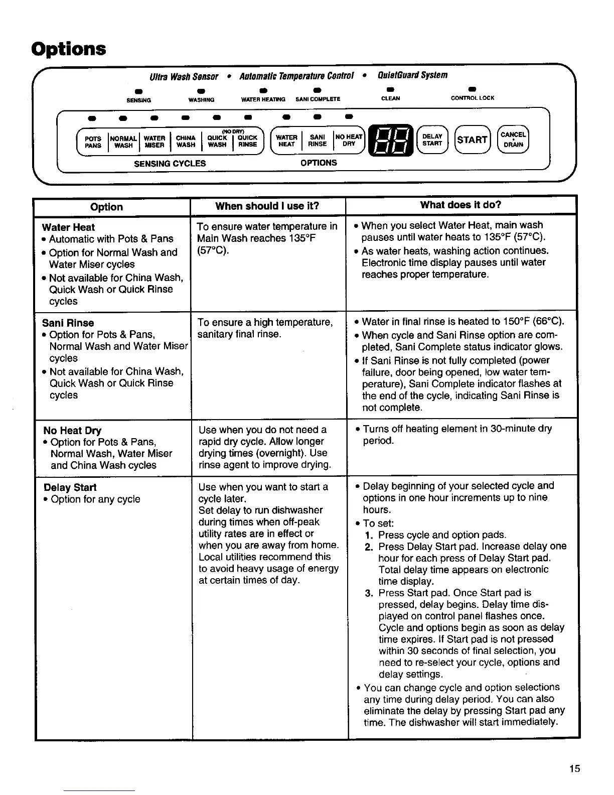 SENSING WASHtNG WATER HEATING SANI COMPLETE CLEAN CONTROL LOCK