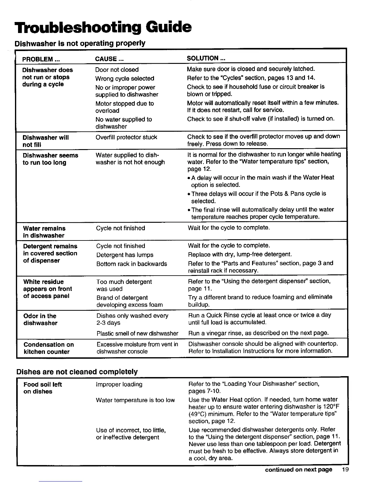 of dispenser Bottom rack in backwards Refer to the "Parts and Features" section, page 3 and