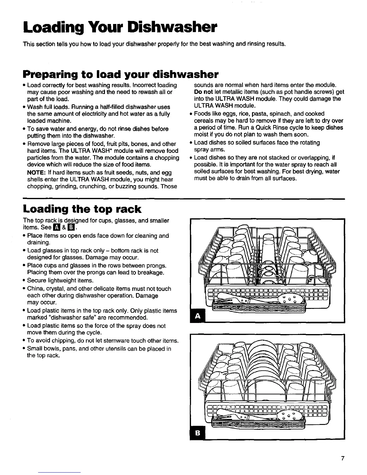 This section tells you how to load your dishwasher properly for the best washing and rinsing results.
