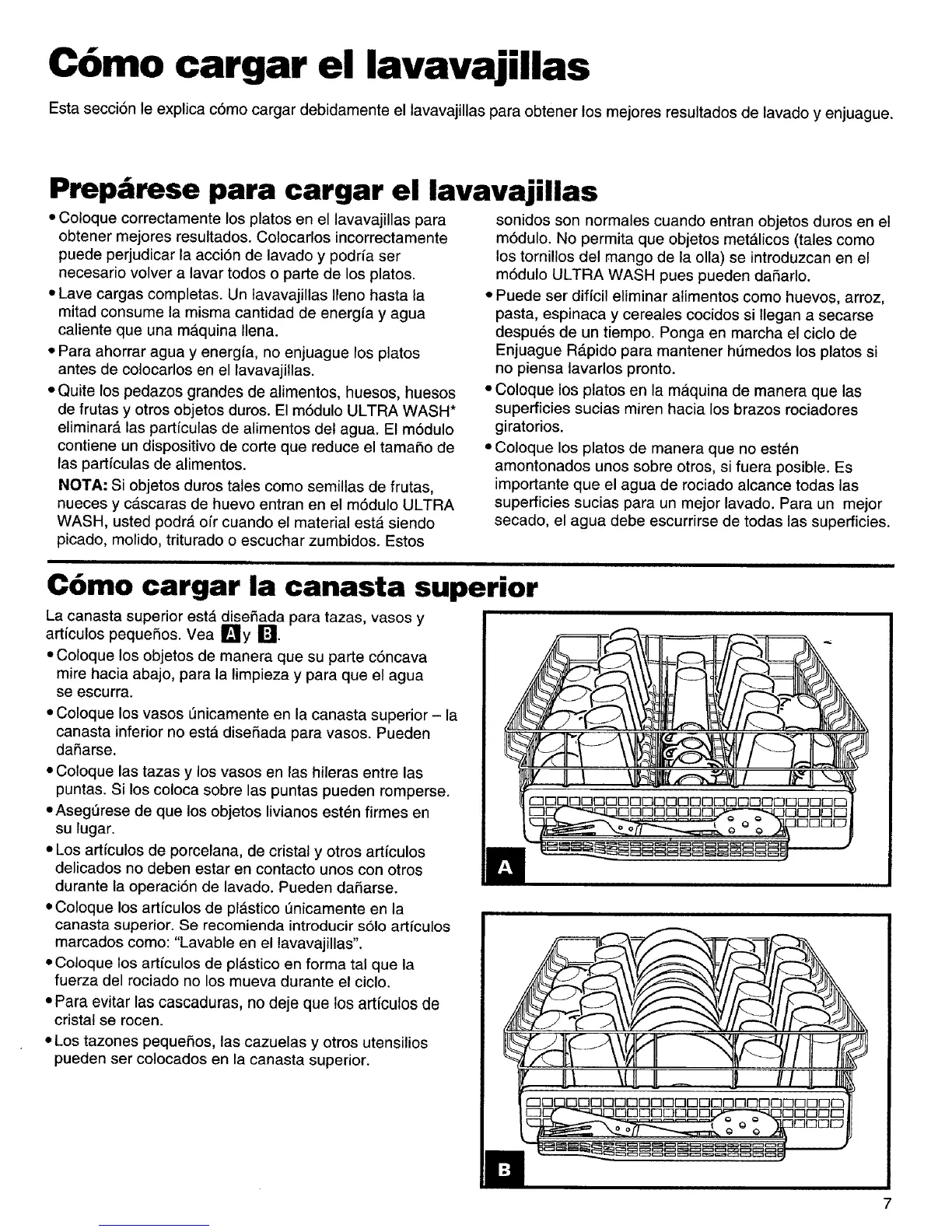 canasta superior. Se recomienda introducir solo artfculos