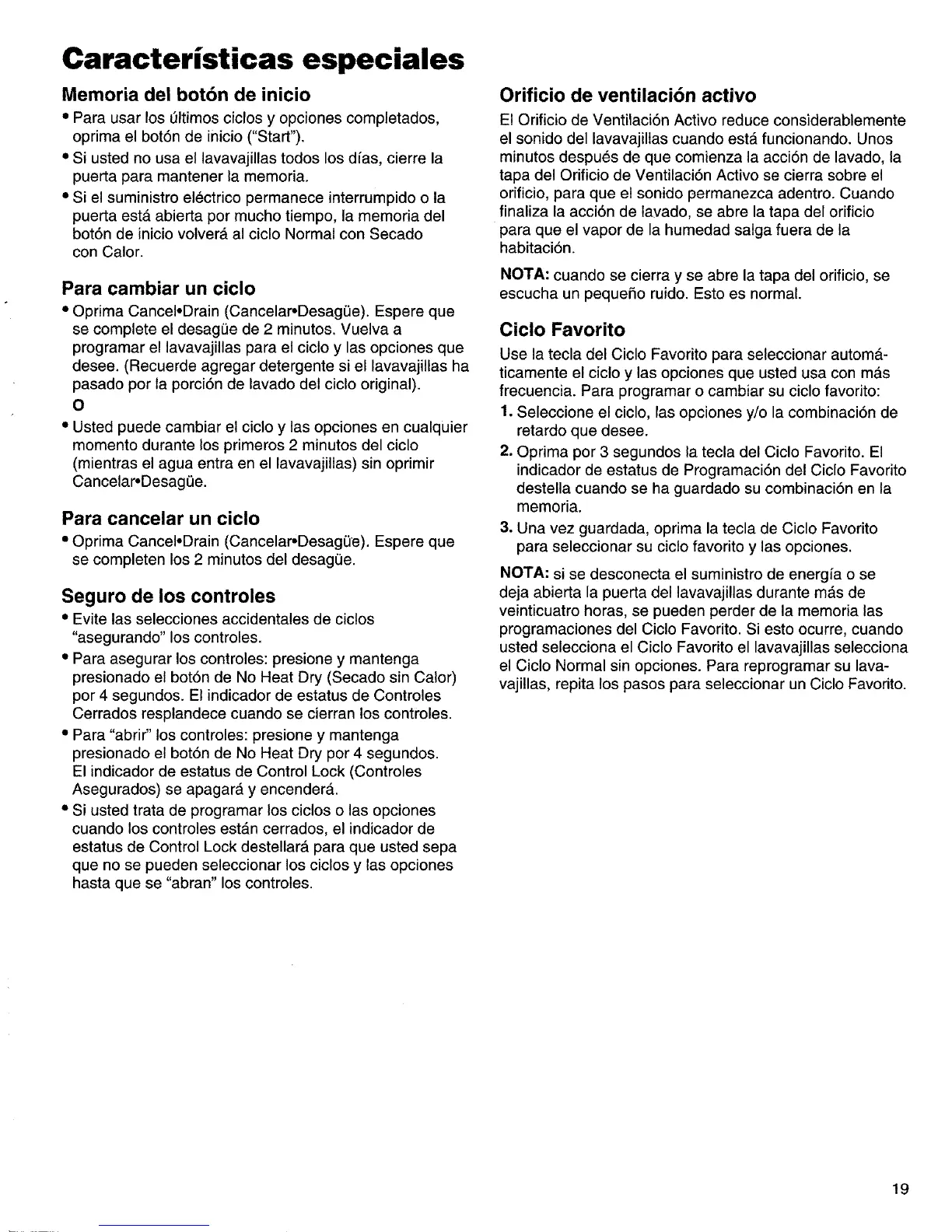• Si usted no usa el lavavajillas todos los dfas, cierre la