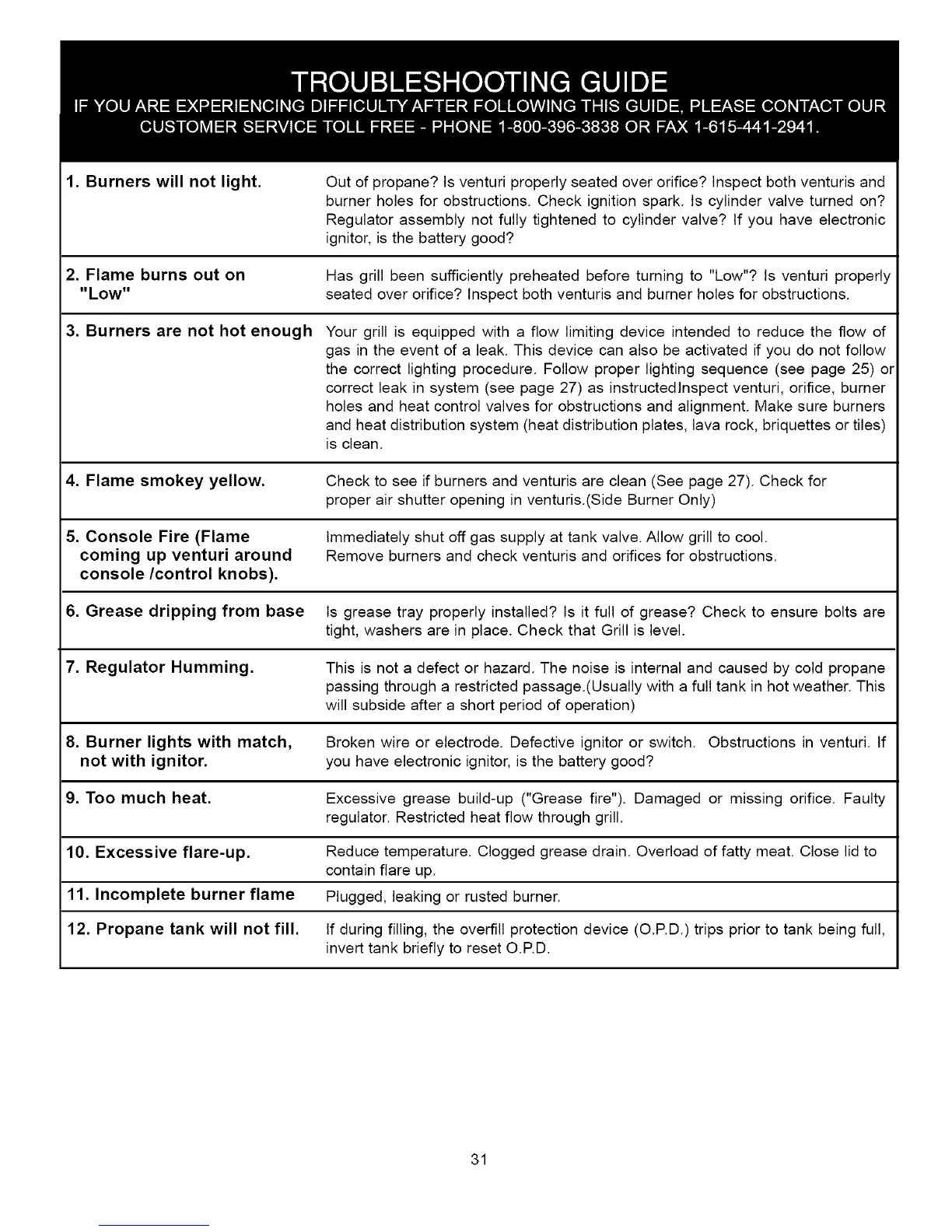2. Flame burns out on Has grill been sufficiently preheated before turning to "Low"? ts venturi properly