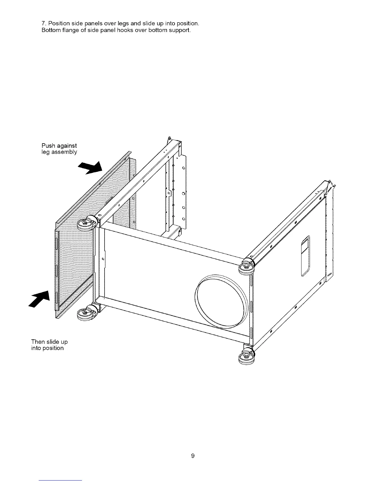 7. Position side panels over legs and slide up into position.