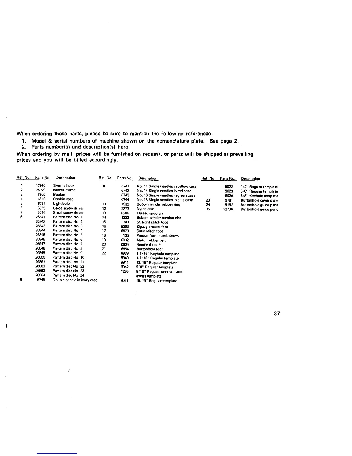 26848 Pattern disc No. 8 2I 6854 Buttonhole foot
