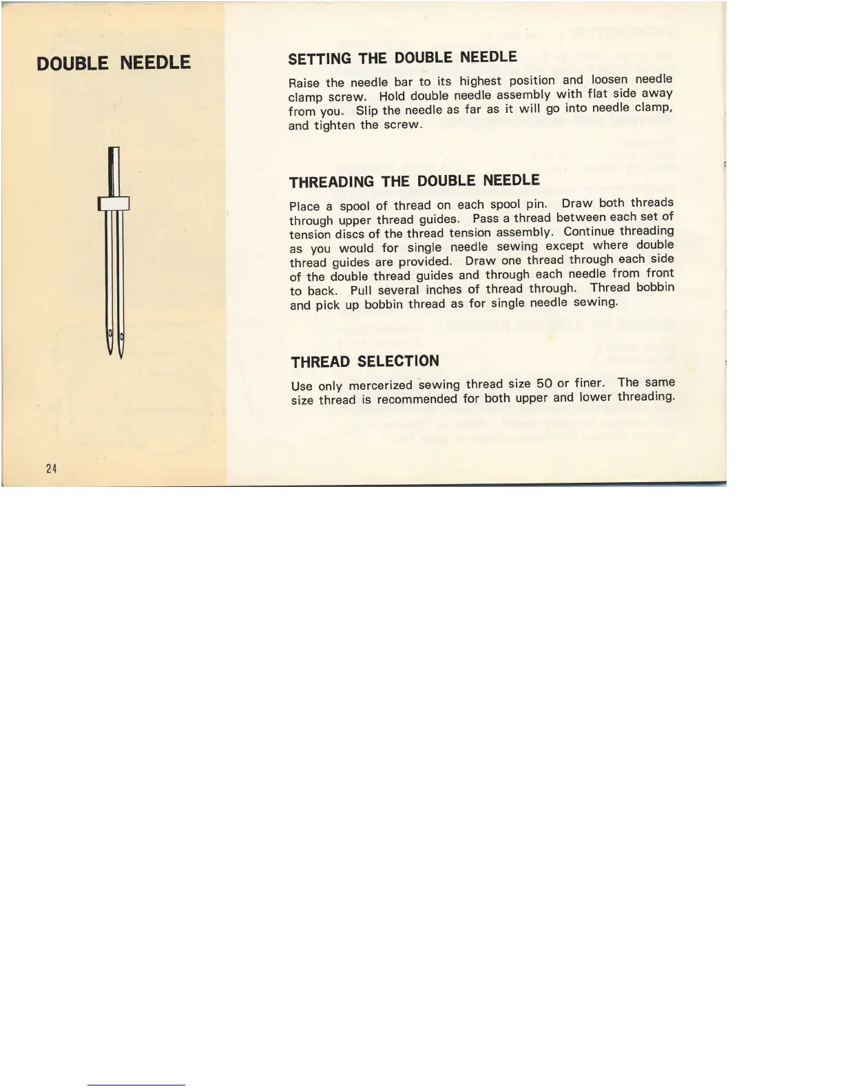 Kenmore 1654 - Double Needle; Setting the Double Needle; Threading the Double Needle; Thread Selection