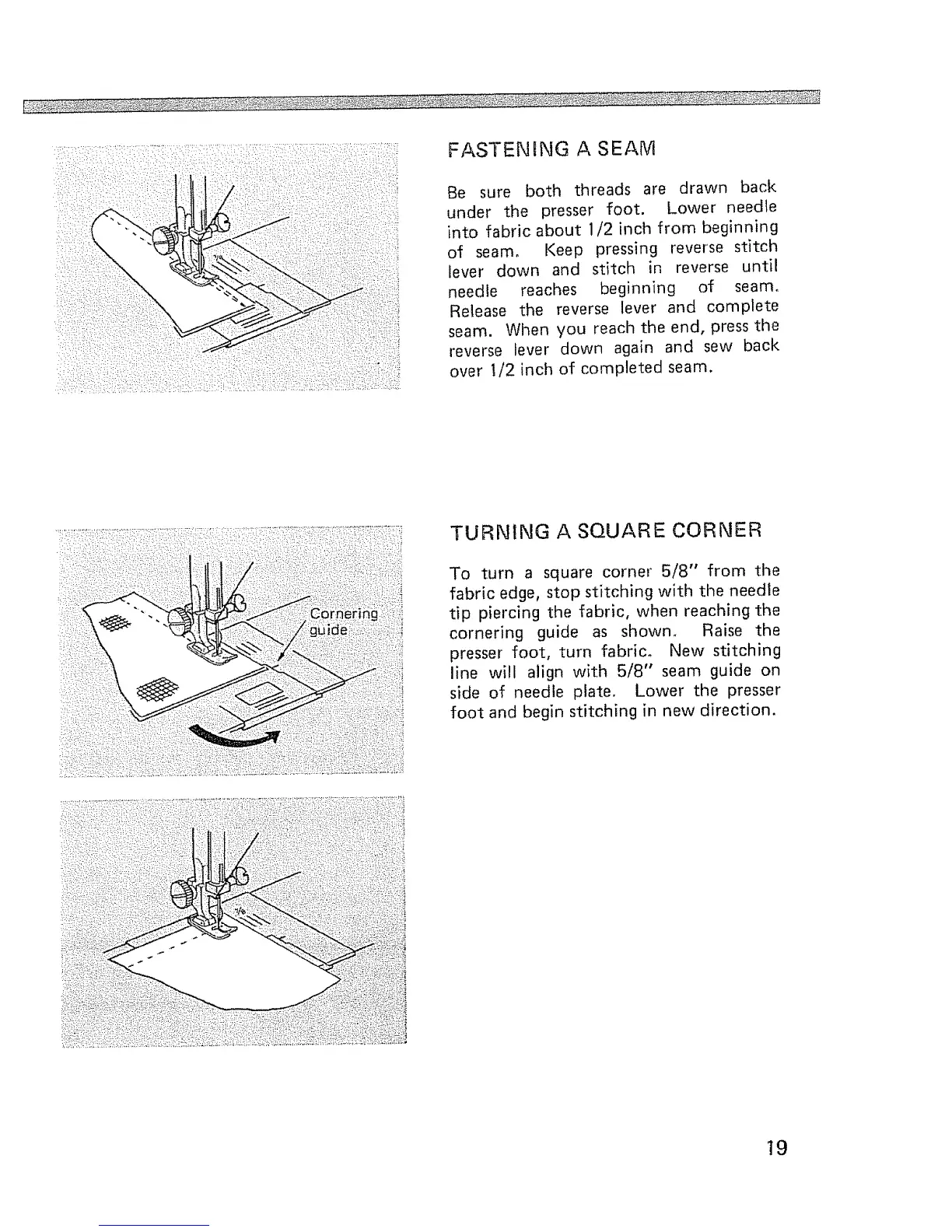 presser foot, turn fabric. New stitching
