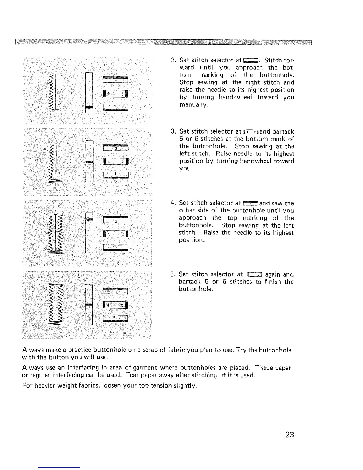 Always make a practice buttonhole on a scrap of fabric you plan to use. Try the buttonhole