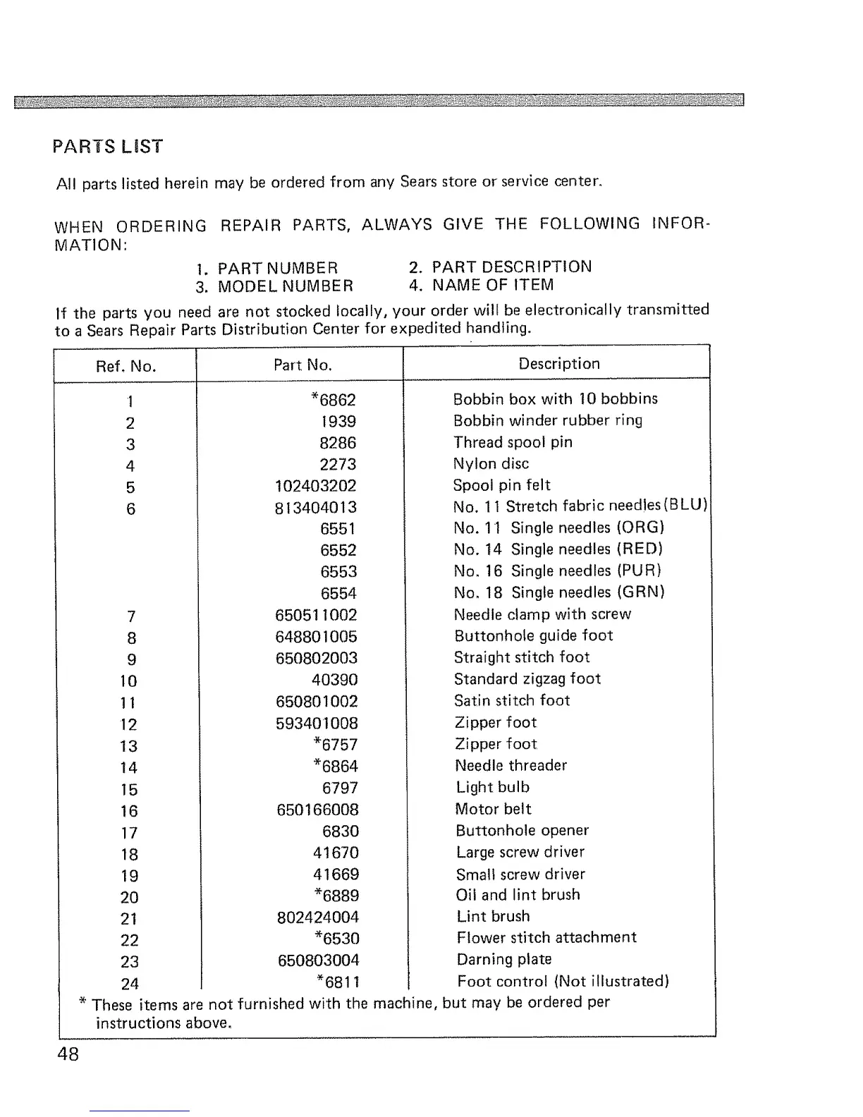 WHEN ORDERING REPAIR PARTS, ALWAYS GIVE THE FOLLOWING INFOR-