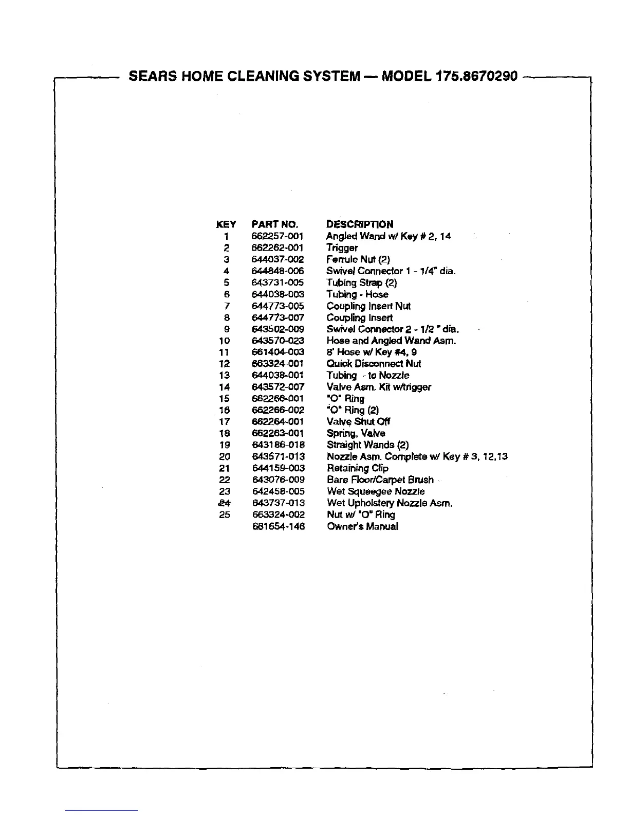 SEARS HOME CLEANING SYSTEM--- MODEL t75.8670290 -