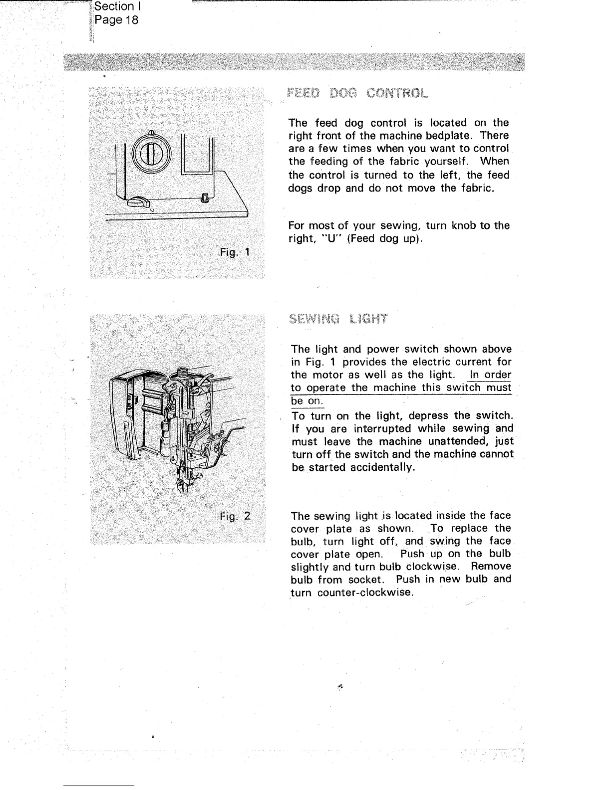Kenmore 1755 - Feed Dog Control; Sewing Light