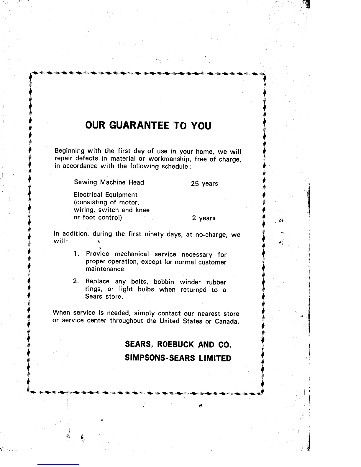 Kenmore 1755 - Product Guarantee and Service