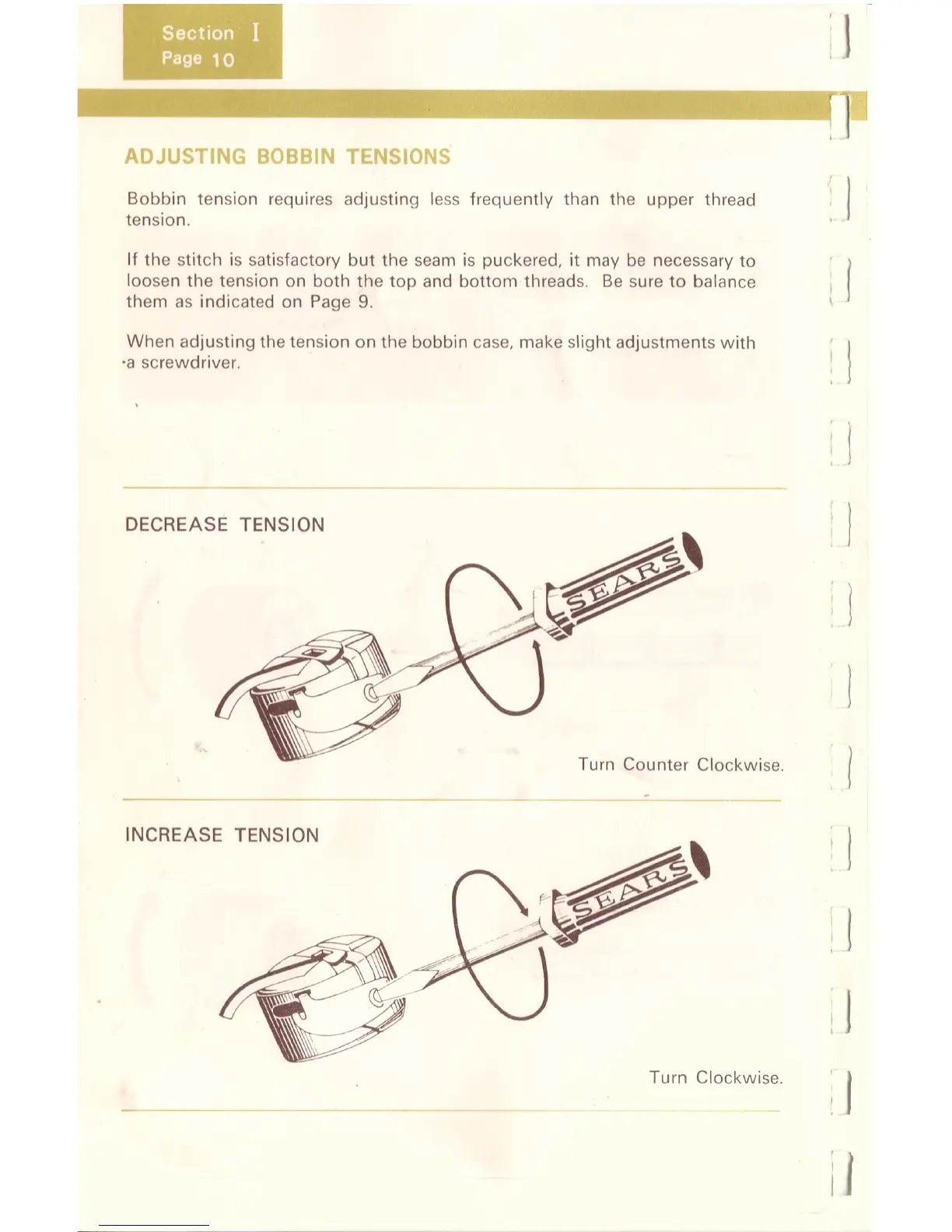 Kenmore 1774 - Adjusting Bobbin Tensions; Decrease Tension; Increase Tension