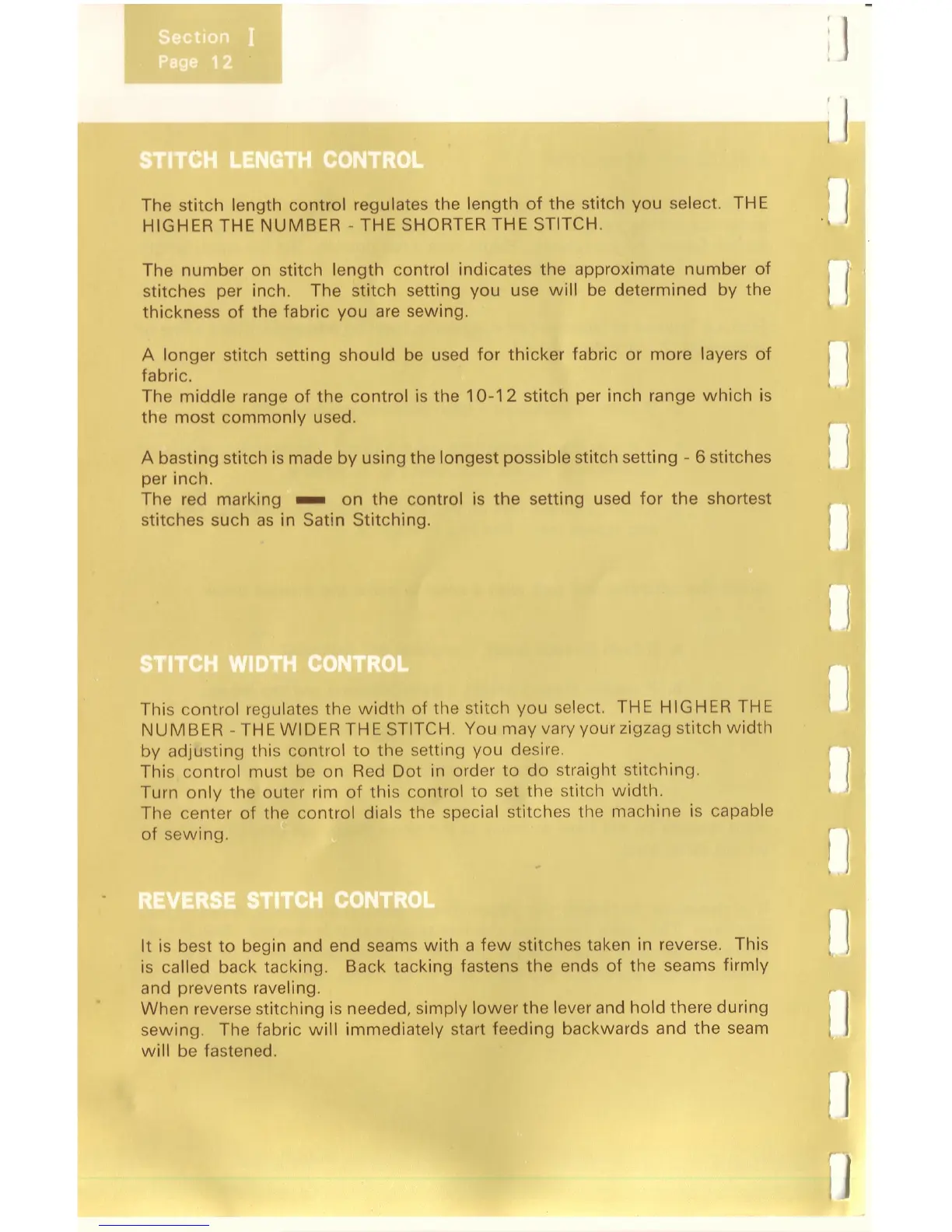 Kenmore 1774 - Stitch Length Control; Stitch Width Control; Reverse Stitch Control