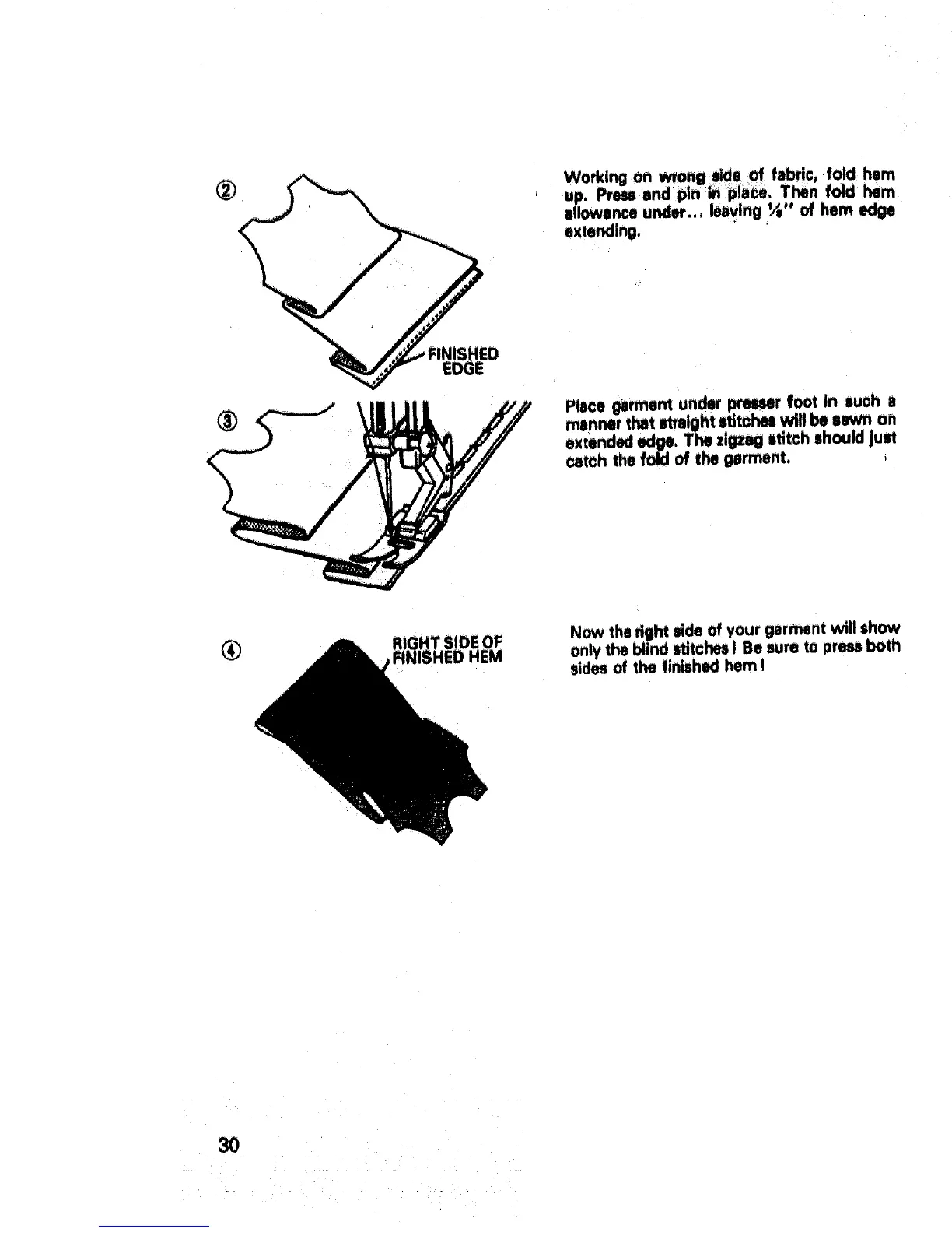 Working on _,g side _of fabric, foJd hem