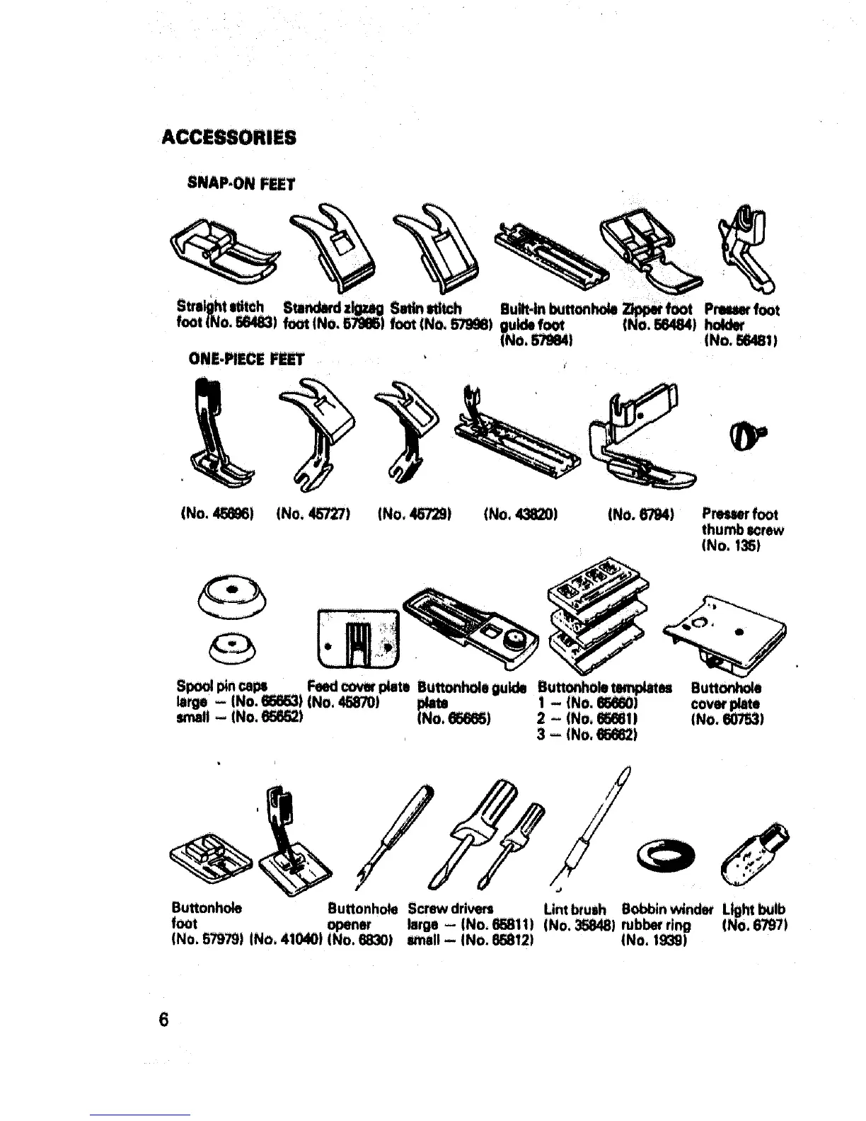 Buttonhole Buttonhole Screw drivers Lint brush B_n winder Light bulb