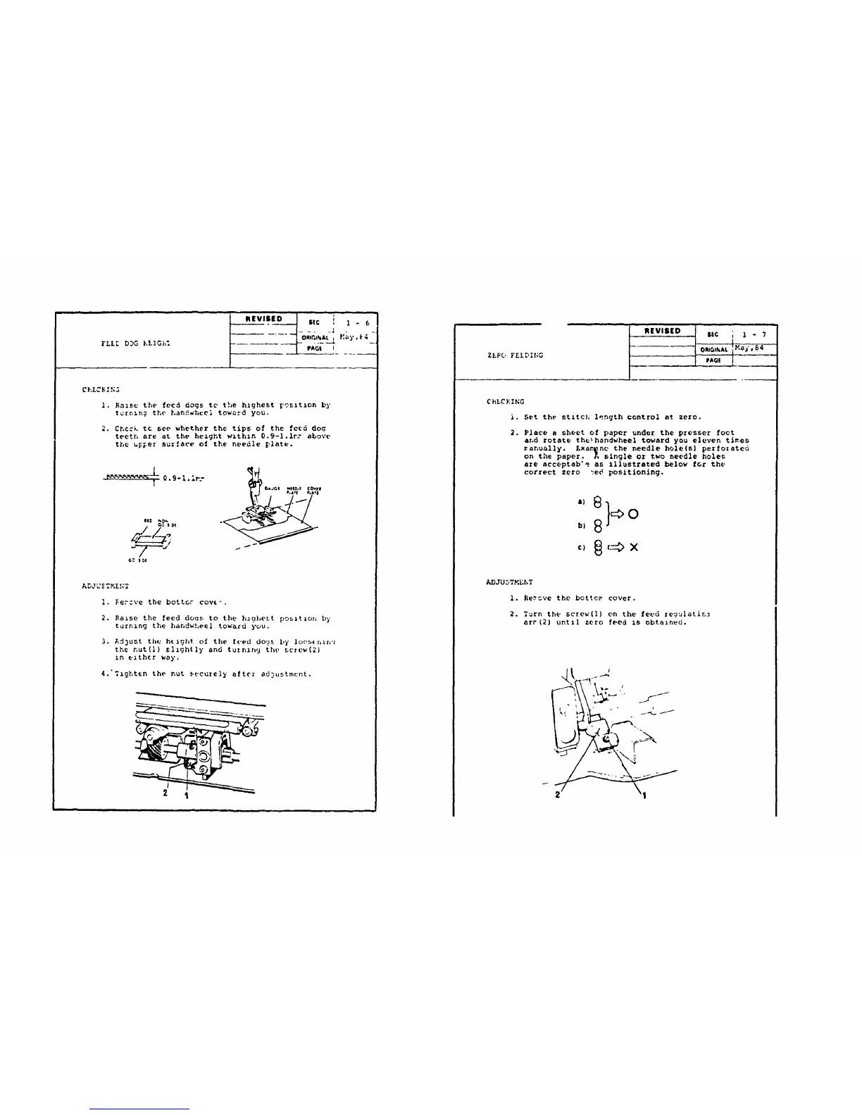 2. Chcck tc see whether the tips of the feed dog