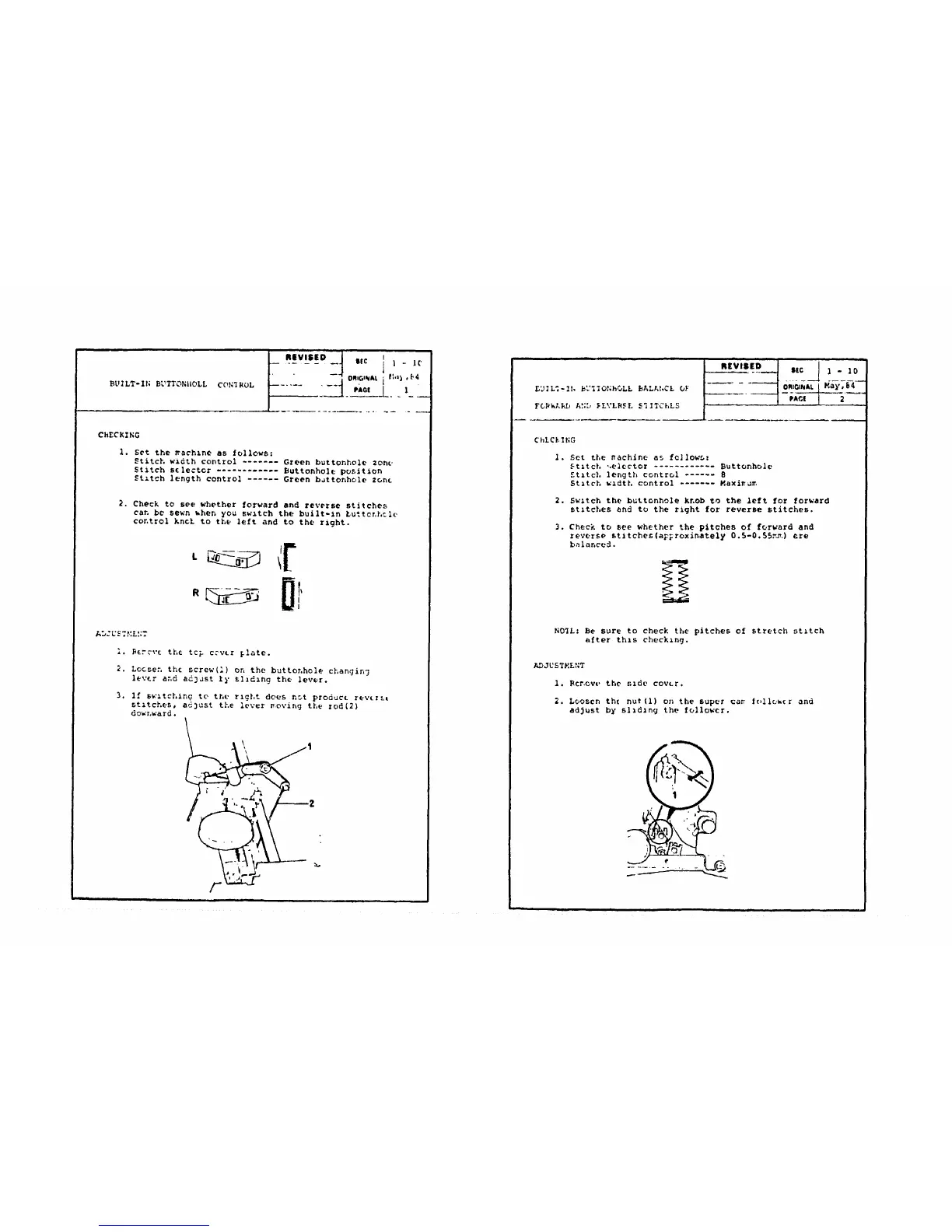 2. Lo&ser, the screw(1) on the buttonhole changing