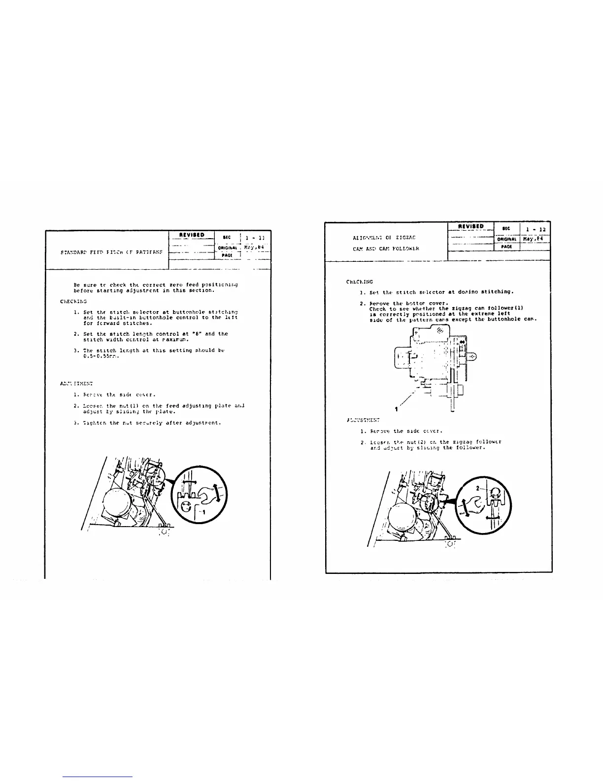 2. Looser. the nut(1) on tLe feed adjusting [,late ahJ