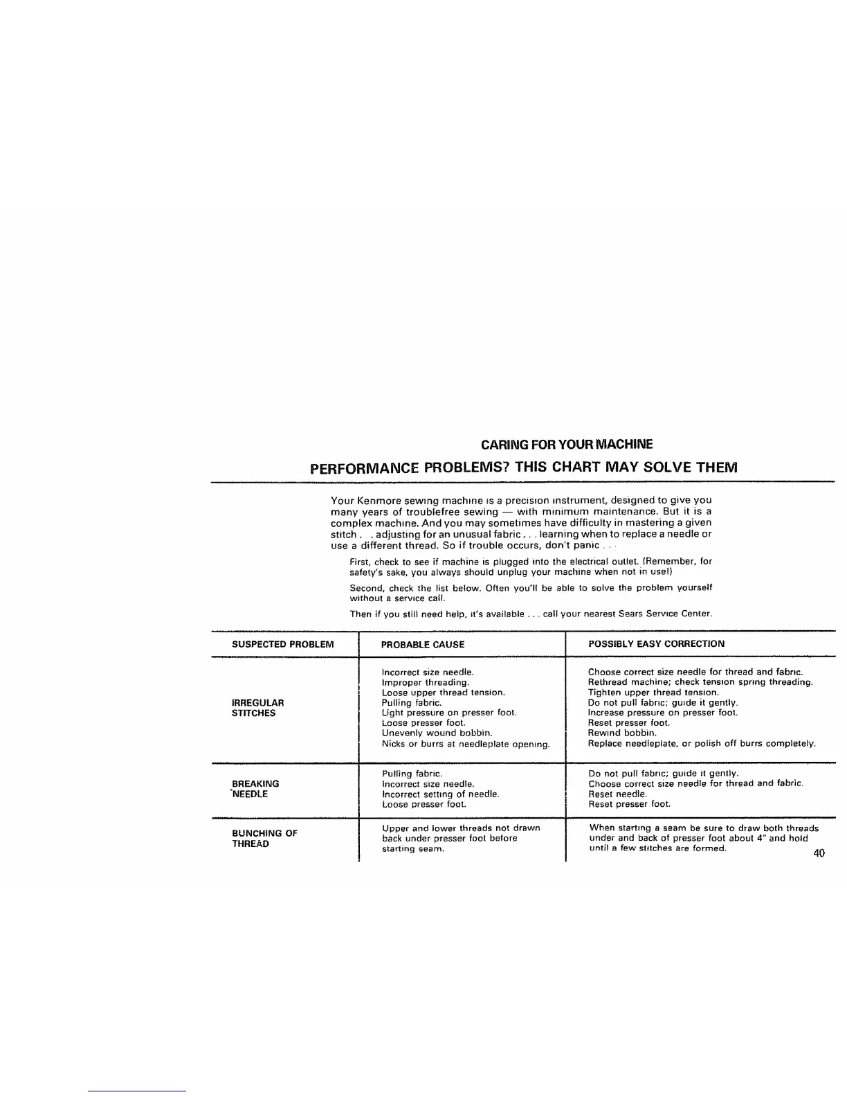 Your Kenmore sewing machine =sa precision instrument, designed to give you