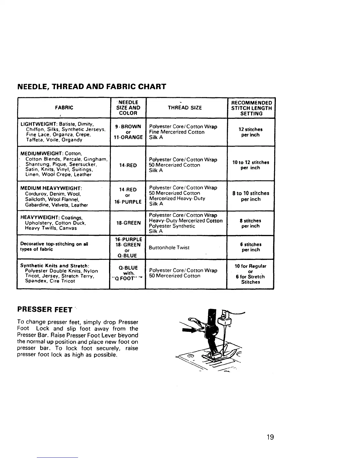 presser bar. To lock foot securely, raise
