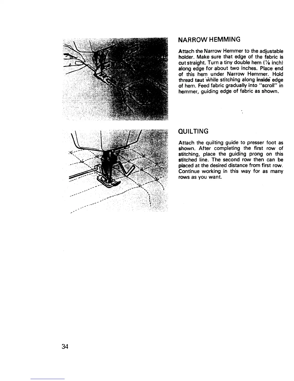 hemmer, guiding edcJe of fabric as shown.