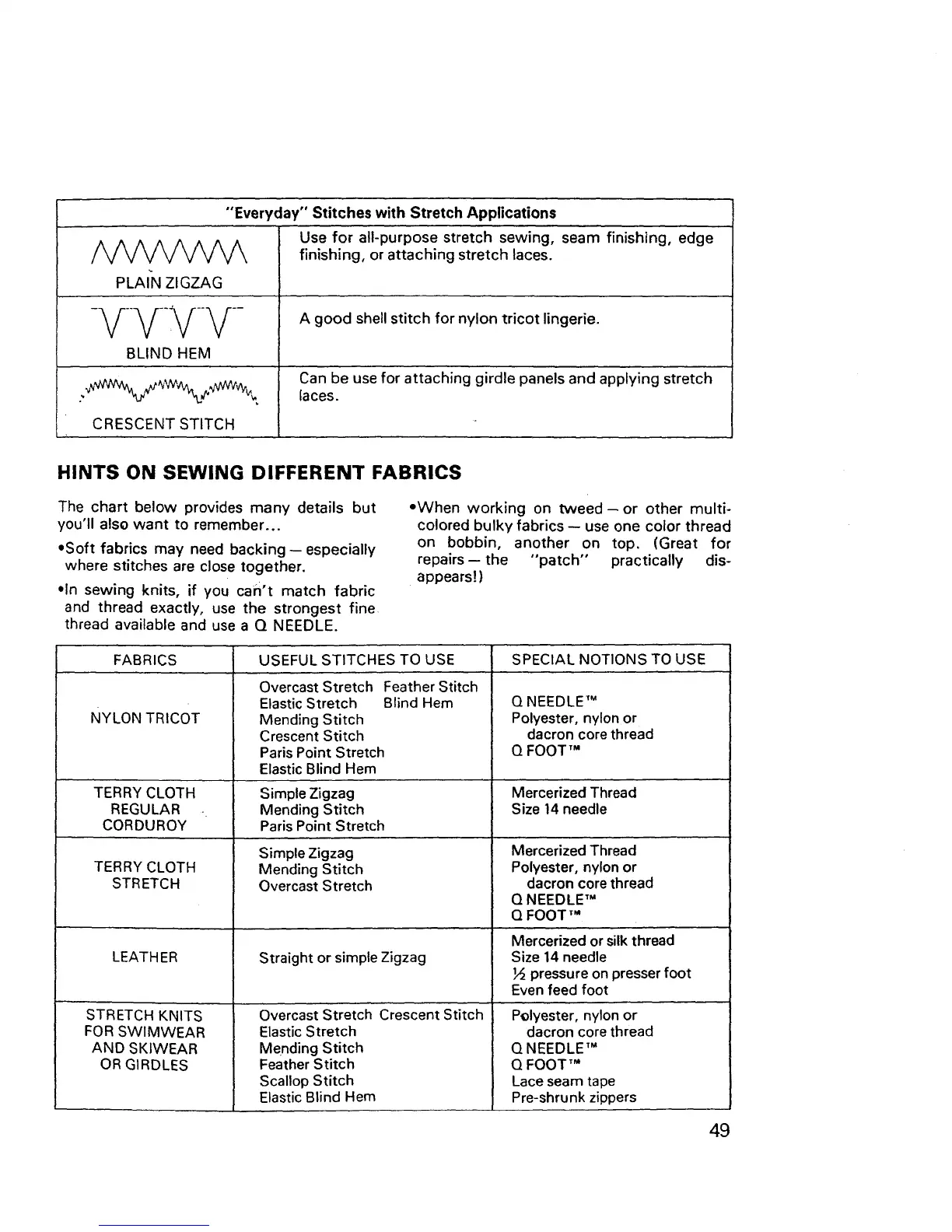 FABRICS USEFUL STITCHES TO USE SPECIAL NOTIONS TO USE