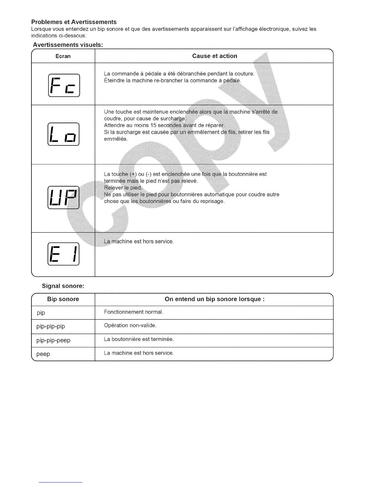 Lorsque vous entendez un hip sonore et que des avertissements apparaissent sur l'affichage electronique, suivez les