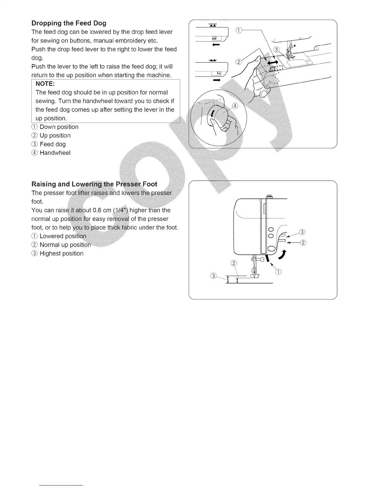 the feed dog comes up after setting the lever in the