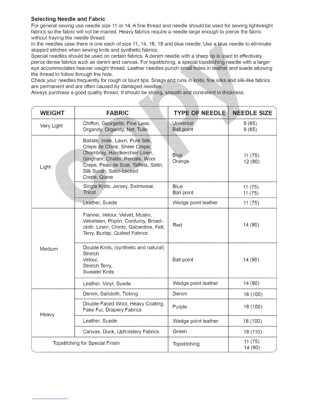 fabrics so the fabric will not be marred. Heavy fabrics require a needle large enough to pierce the fabric