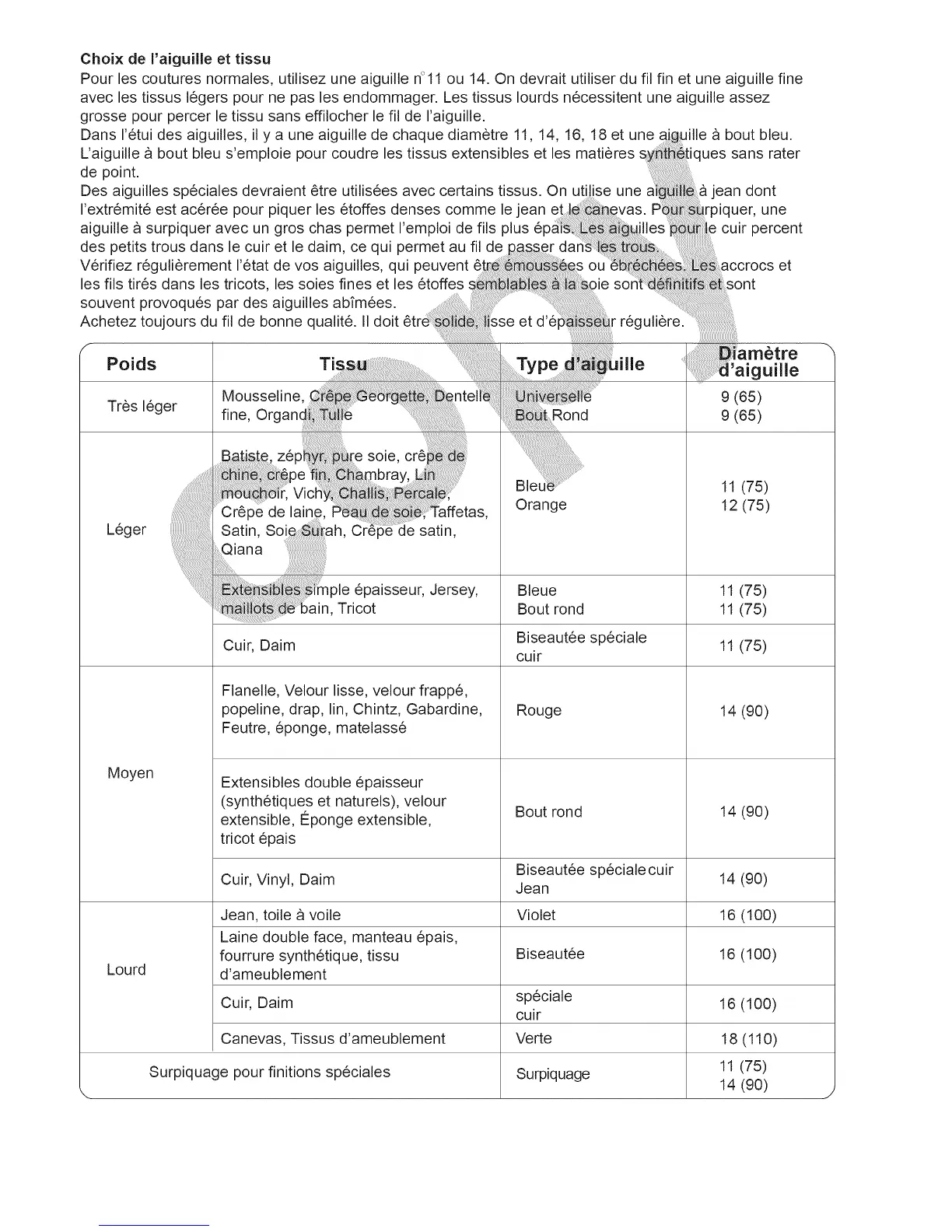 Desaiguillessp6cialesdevraient6tre utilis6es avec certains tissus. On utilise une ai a jean dont