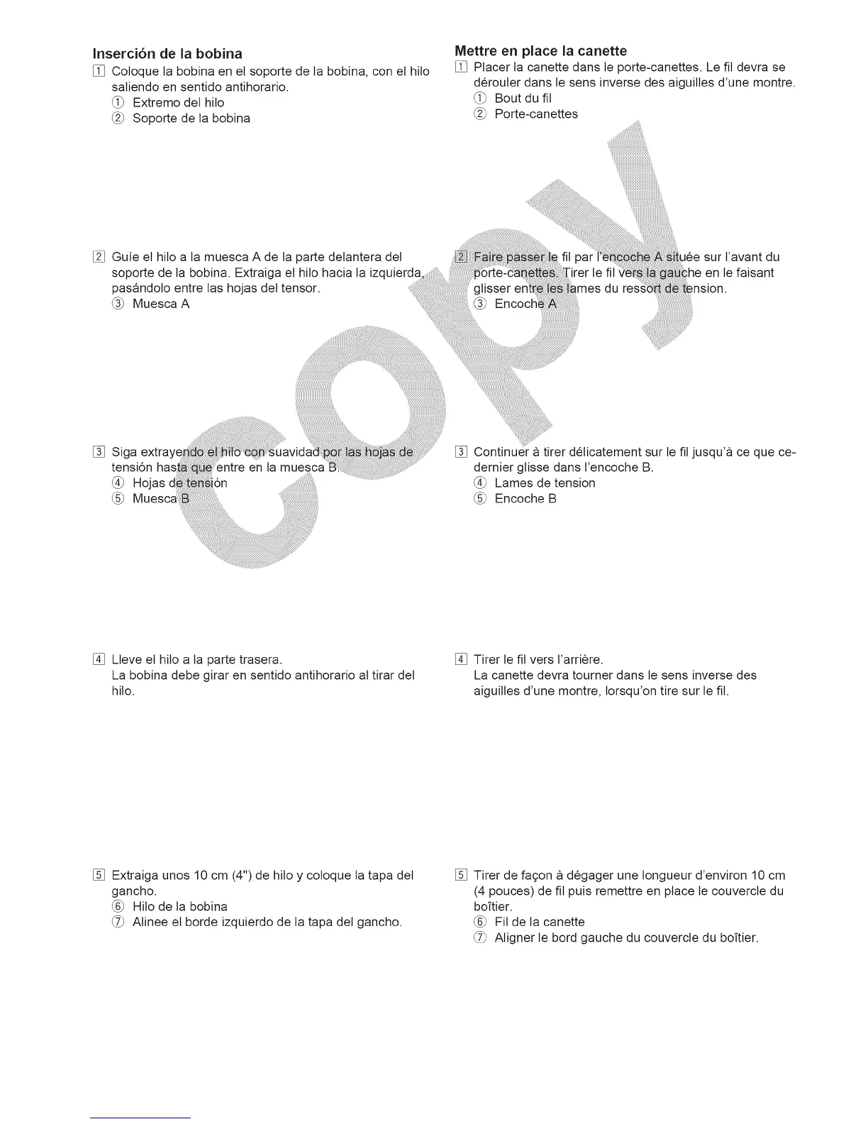 [] Coloque ta bobina en el soporte de la bobina, con et hito