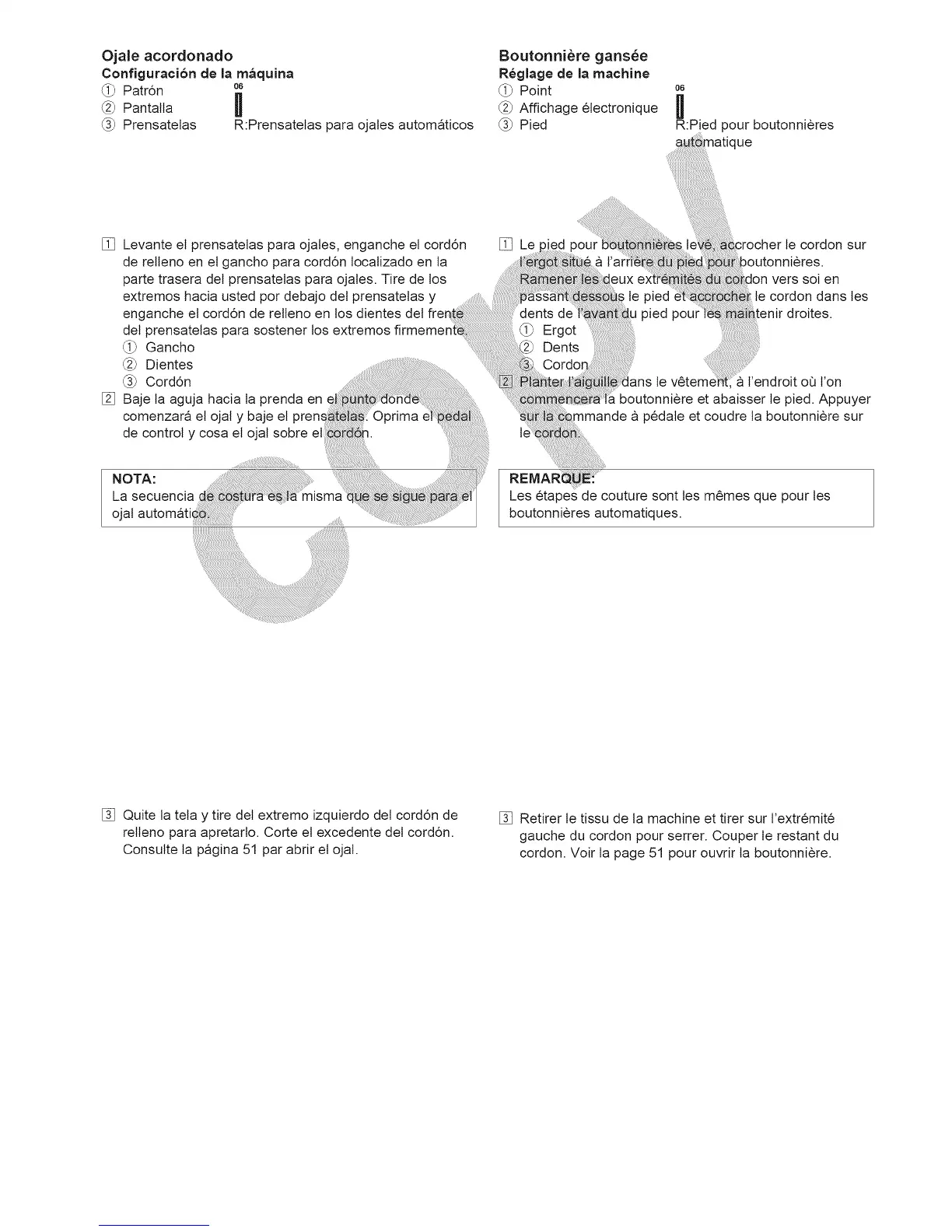 cordon. Voir la page 51 pour ouvrir la boutonniere.